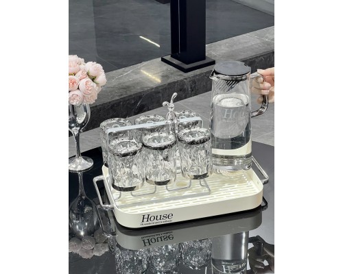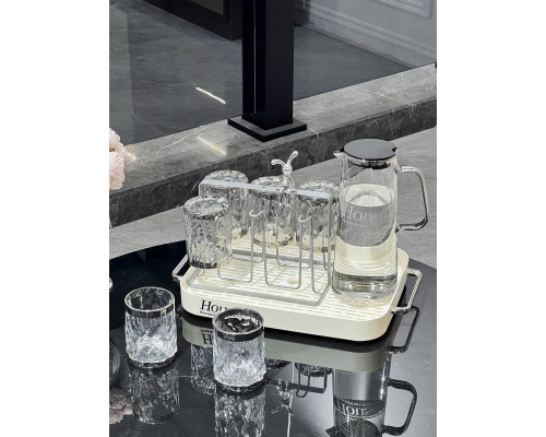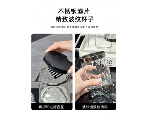 【透明】波紋杯6+熱水壺+瀝水托盤+架子 (NT1,791)