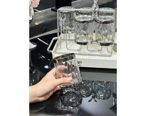 【銀邊】波紋杯6+熱水壺+瀝水托盤+架子 (NT1,981)