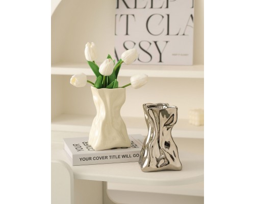 【銀色】褶皺花瓶+5白郁金香 (NT507)