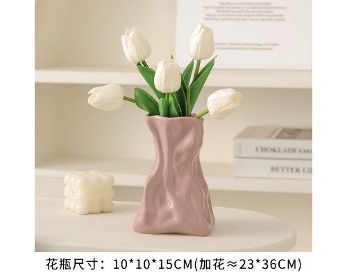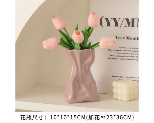 【紫色】褶皺花瓶+5粉郁金香 (NT507)