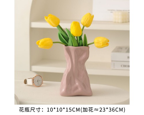 【奶黃】褶皺花瓶+5粉郁金香 (NT507)