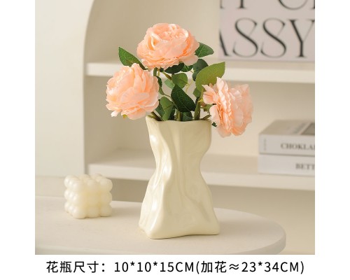 【奶黃】褶皺花瓶+3香檳玫瑰 (NT507)