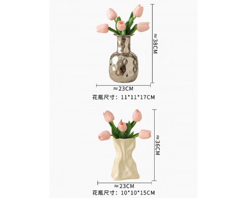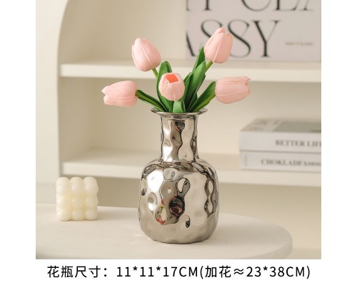【銀色】錘紋花瓶+5粉郁金香 (NT507)
