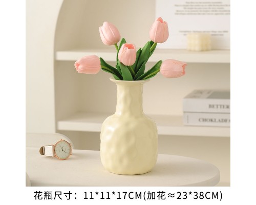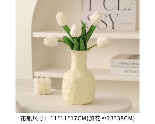 【奶黃】錘紋花瓶+5白郁金香 (NT507)