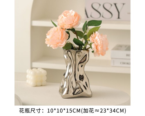 【銀色】褶皺花瓶+3香檳玫瑰 (NT507)