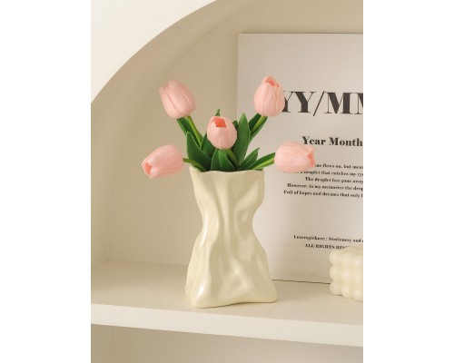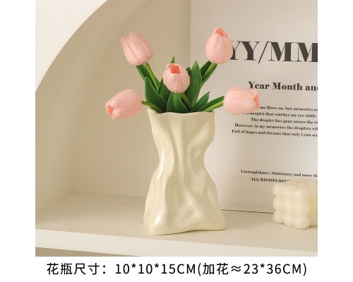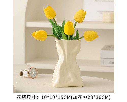 【奶黃】褶皺花瓶+5白郁金香 (NT507)