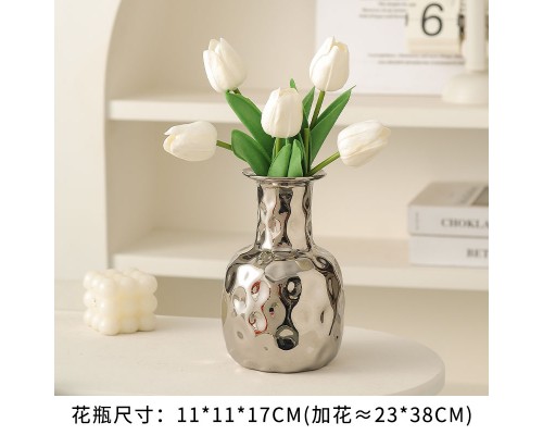 【銀色】錘紋花瓶+5白郁金香 (NT507)