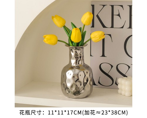 【銀色】錘紋花瓶+5黃郁金香 (NT507)