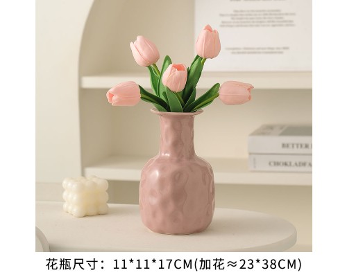 【紫色】錘紋花瓶+5粉郁金香 (NT507)
