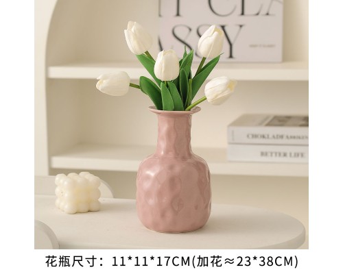 【奶黃】錘紋花瓶+5粉郁金香 (NT507)