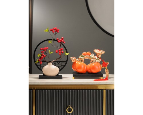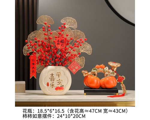 柿柿如意擺件+平安喜樂花瓶(4果2葉+掛牌) (NT1,400)