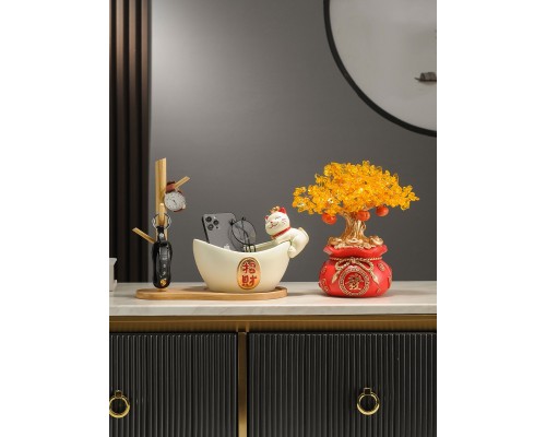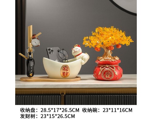 招財貓收納(底座)+【紅】招財樹擺件 (NT1,875)
