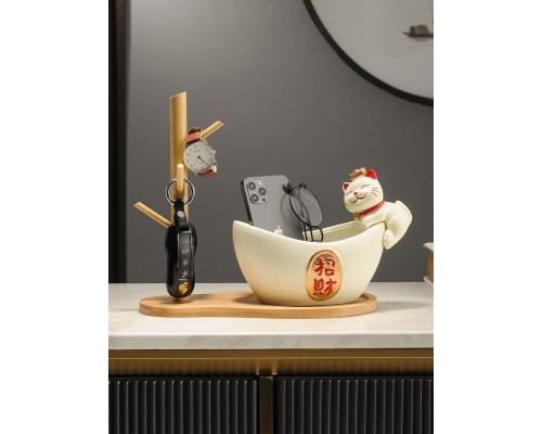 招財貓擺件玄關入戶門鑰匙收納客廳電視柜鞋柜裝飾品喬遷新居禮品