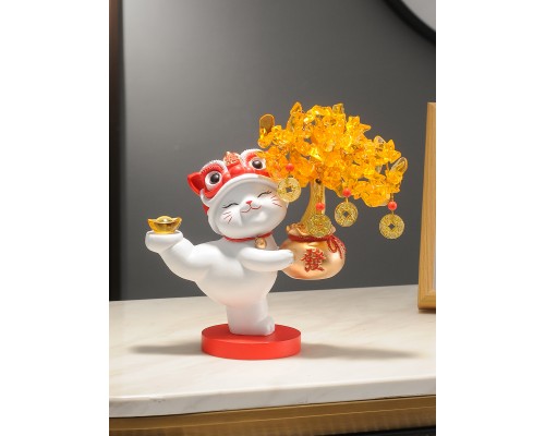 【白色】發財樹招財貓+暖居字+底座 (NT1,837)