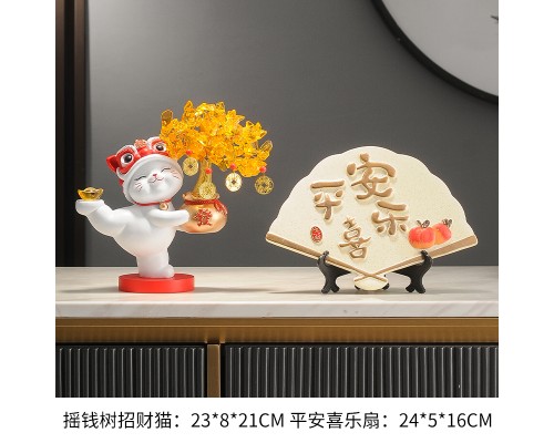 【白色】發財樹招財貓+平安喜樂扇 (NT1,685)