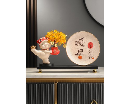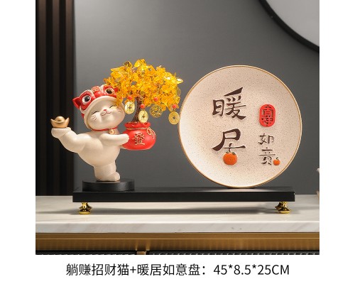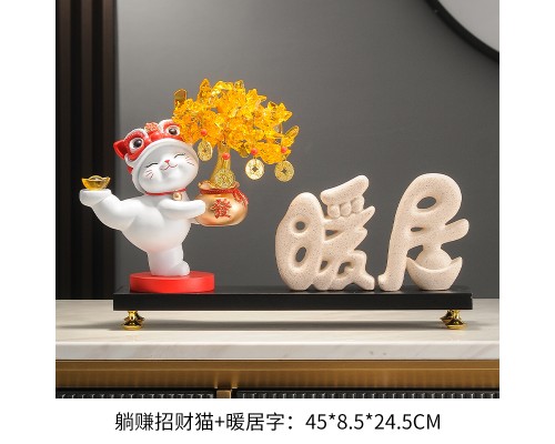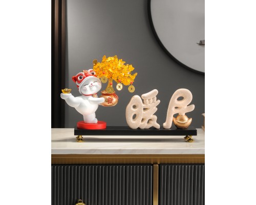 【米色】發財樹招財貓+暖居字+底座 (NT1,837)