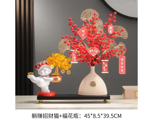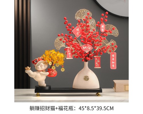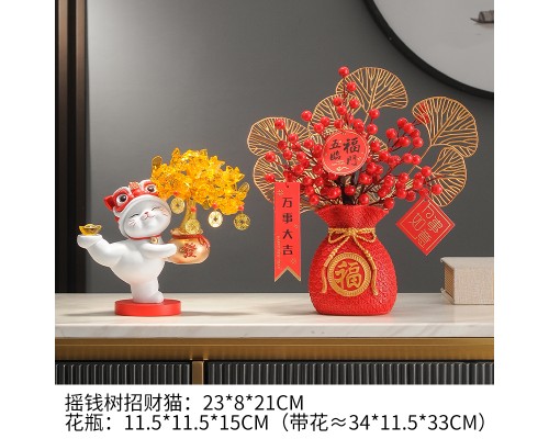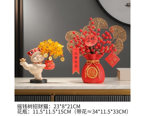 【米色】發財樹招財貓+福花瓶+底座 (NT1,932)