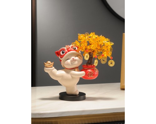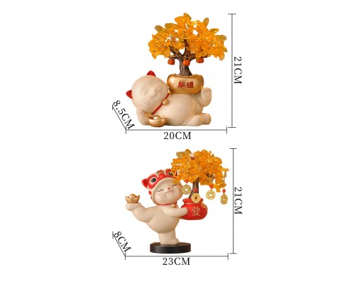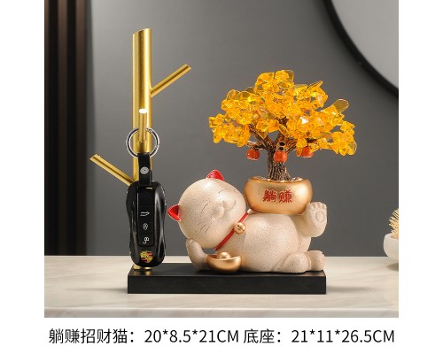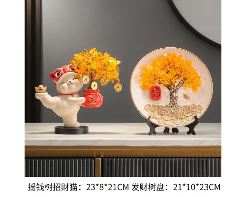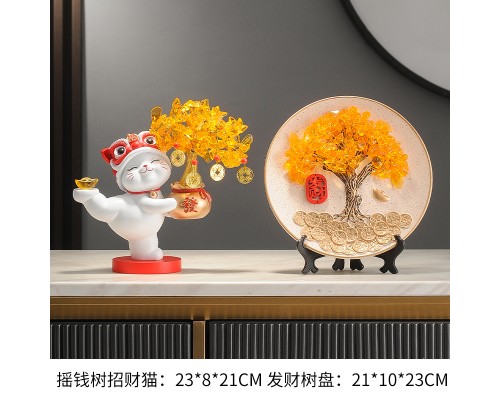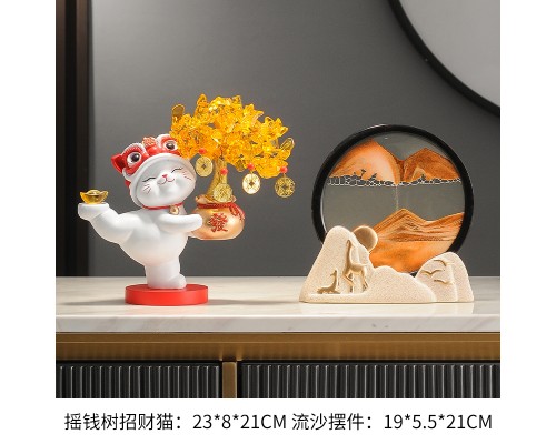 【米色】發財樹招財貓+流沙擺件 (NT1,685)