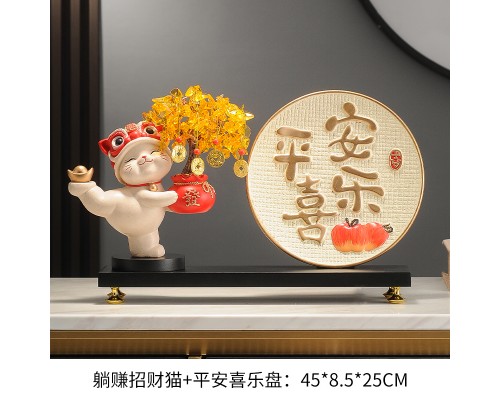【米色】發財樹招財貓+平安喜樂盤+底座 (NT1,932)