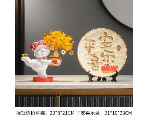 【米色】發財樹招財貓+平安喜樂盤 (NT1,685)