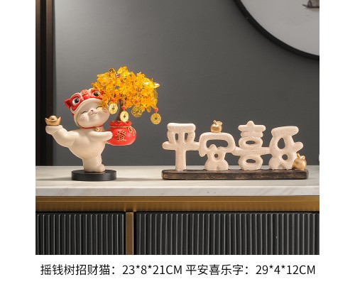 【白色】發財樹招財貓+平安喜樂字 (NT1,846)