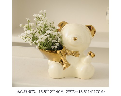 【描金-滿天星】比心熊捧花+平安喜樂 (NT1,039)