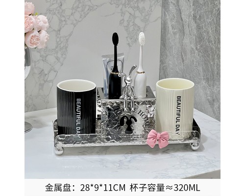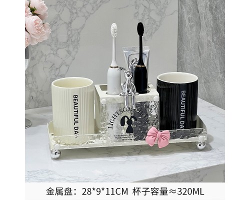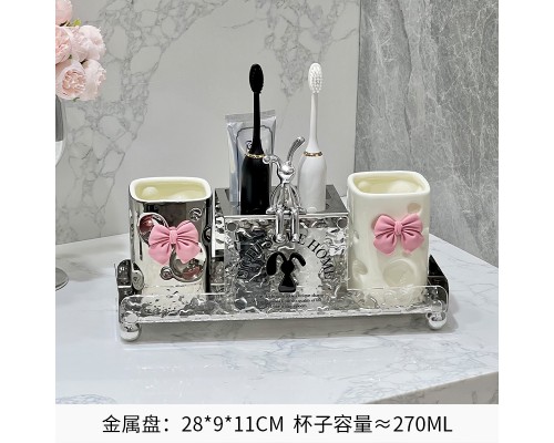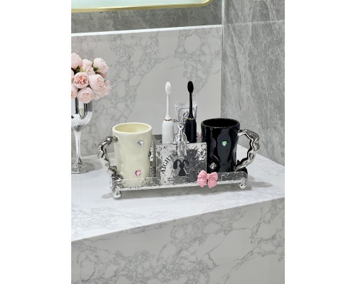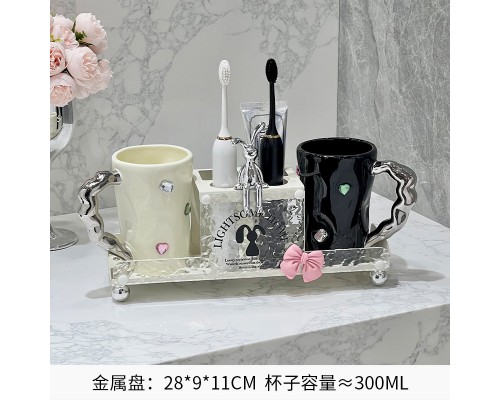奶白金屬牙刷架+情侶鉆石杯 (NT1,134)