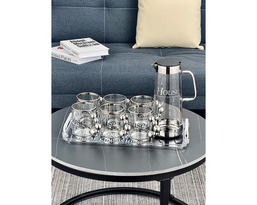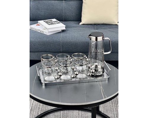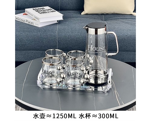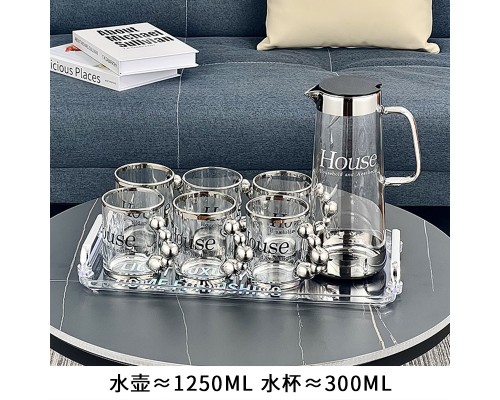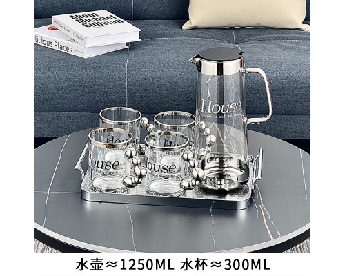 【6銀】House玻璃杯+壺+塑料托盤 (NT1,696)