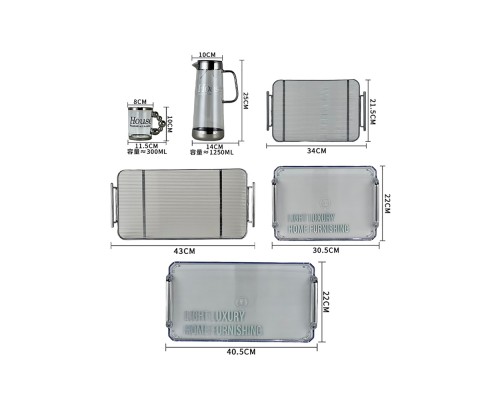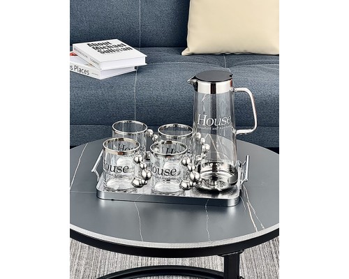 【6銀】House玻璃杯+壺+金屬托盤 (NT1,981)