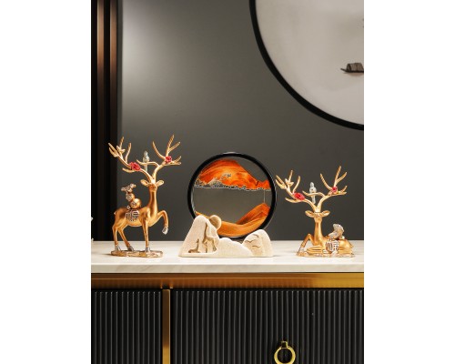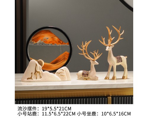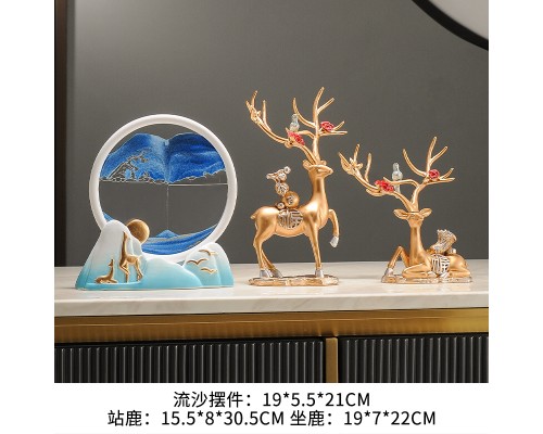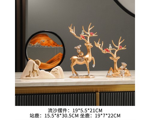 麋鹿流沙畫沙漏擺件輕奢高檔電視柜酒柜客廳辦公室桌面現代裝飾品