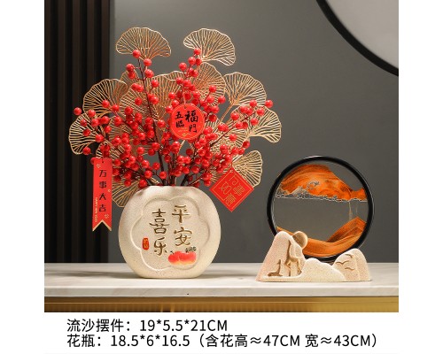【橙】流沙擺件+平安喜樂花瓶(配花) (NT1,038)