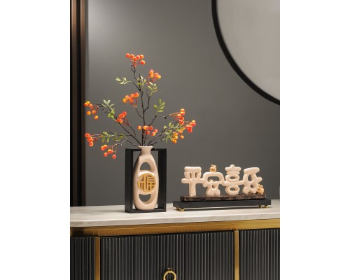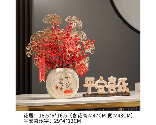 平安喜樂(加底座)+福字花瓶(1黃紅果) (NT1,392)