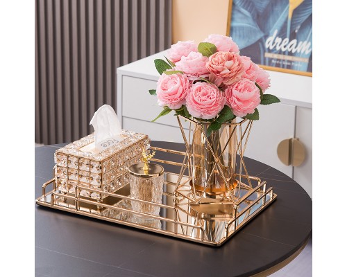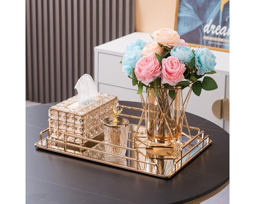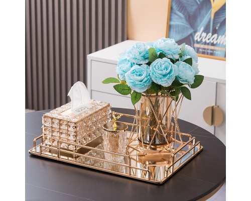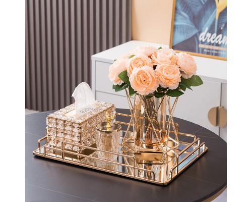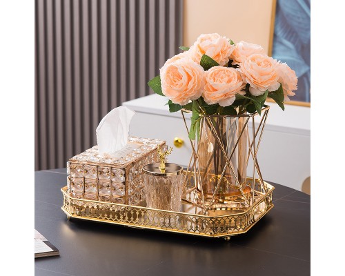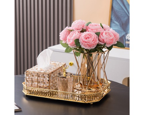 【5件套】大盤+紙巾盒+煙灰缸+牙簽筒+花瓶(香檳玫瑰) (NT2,551)
