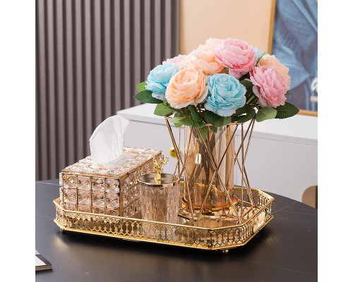 【4件套】八角盤+紙巾盒+牙簽筒+花瓶(香檳玫瑰) (NT1,981)