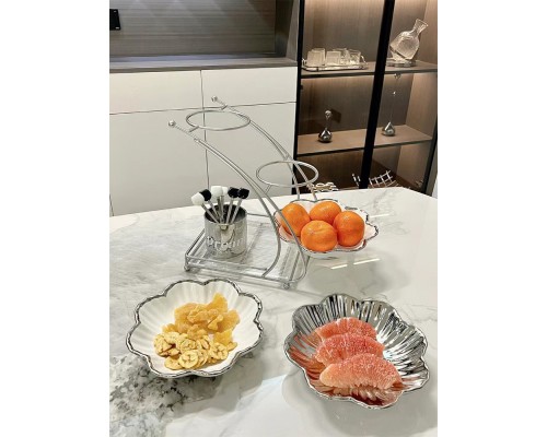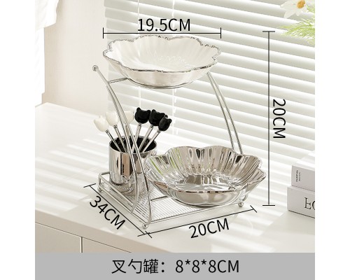 【高級銀】花瓣兩層盤+6叉罐 (NT1,487)