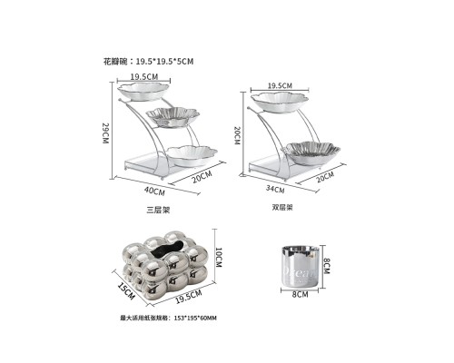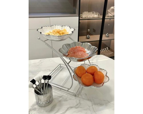 【高級銀】花瓣三層盤+6叉罐 (NT1,772)