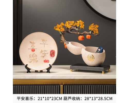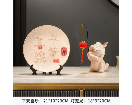 平安喜樂新中式擺件高檔玄關展示柜酒柜電視柜裝飾品喬遷新居禮品