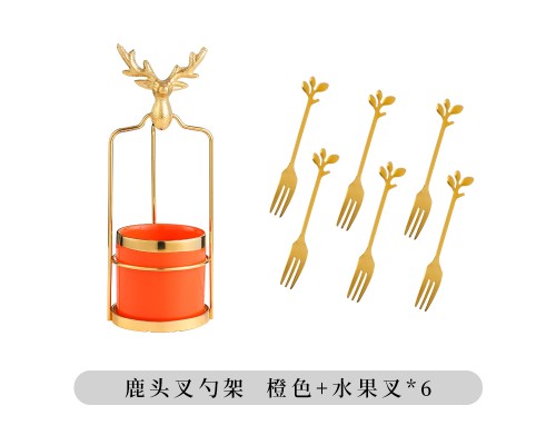 橙 鹿頭叉勺架+6叉 (NT573)