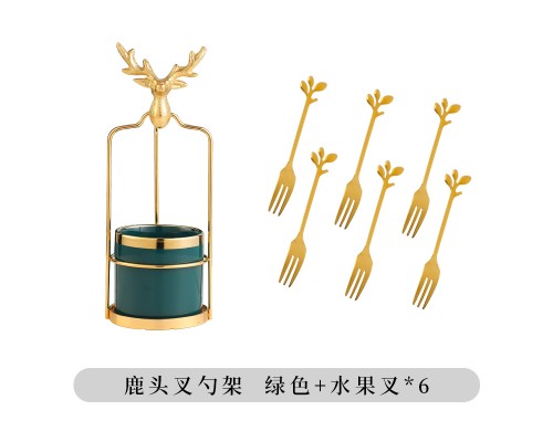 綠 鹿頭叉勺架+6叉 (NT573)