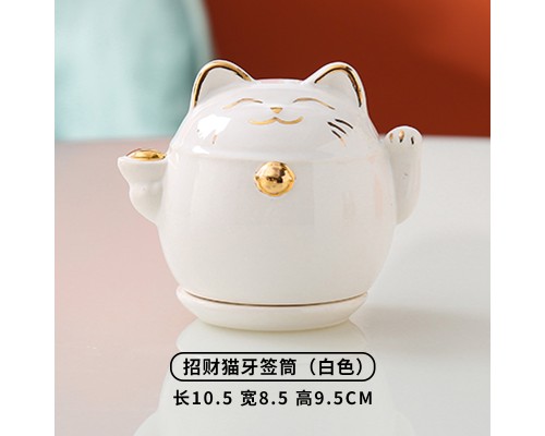 【白色】招財貓牙簽筒