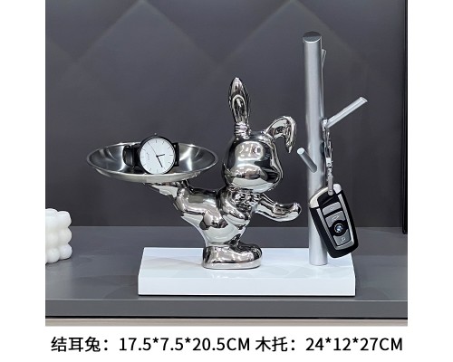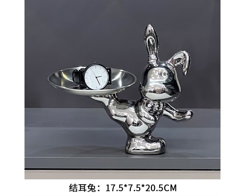 【描銀 托盤】踢腿兔+底座 (NT566)