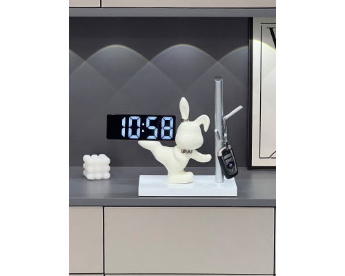 【描銀 時鐘】踢腿兔底座+平安喜樂 (NT1,040)