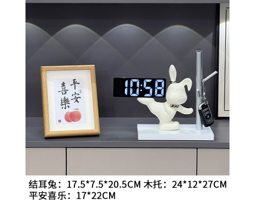 【描銀 時鐘】踢腿兔燈圈+平安喜樂 (NT1,411)