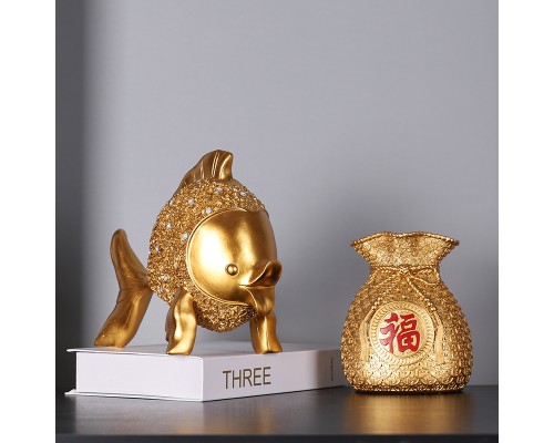 歐式創意招財年年有余擺件金魚裝飾品玄關酒柜喬遷新居禮品