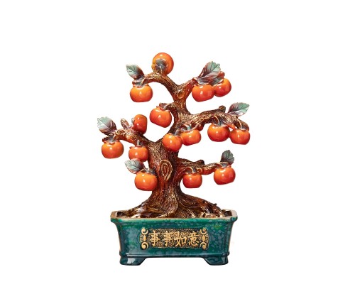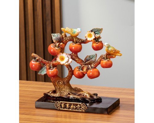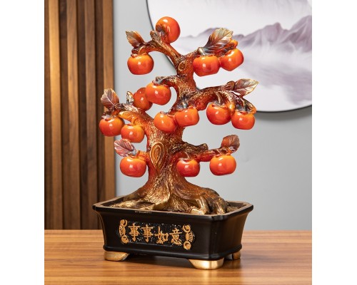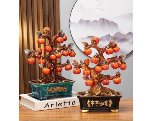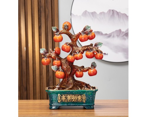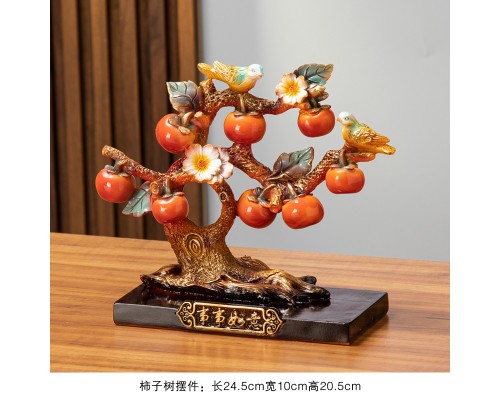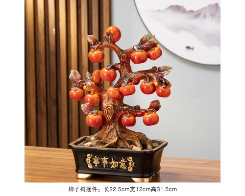 柿柿如意擺件事事如意柿子樹盆栽工藝品新中式客廳辦公玄關裝飾