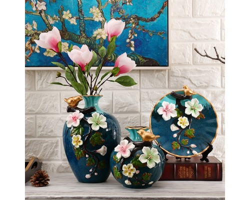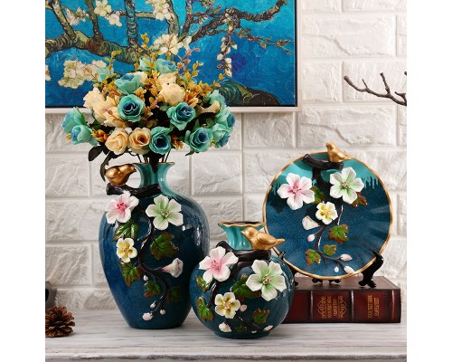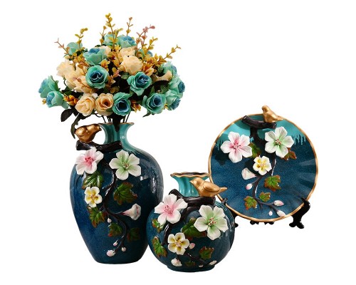 孔雀藍 浮雕花瓶三件套 (NT964)