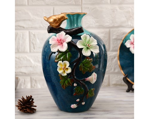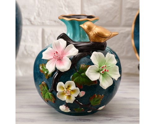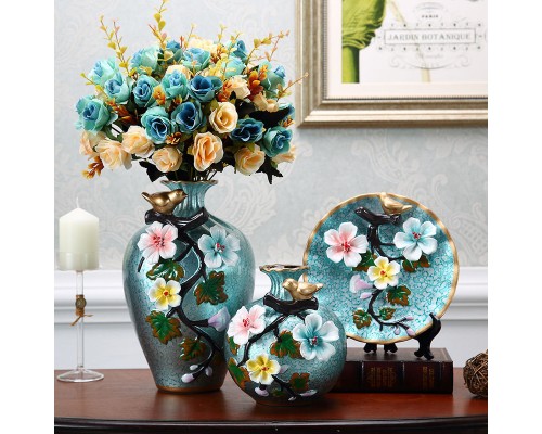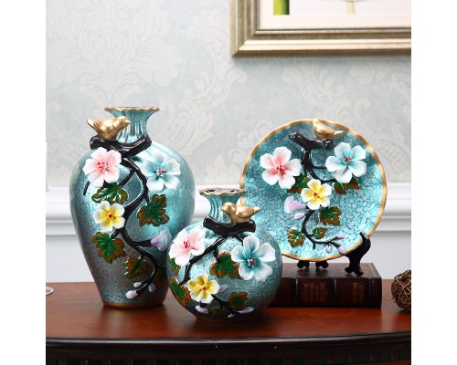 青色寄花花瓶三件套 (NT964)