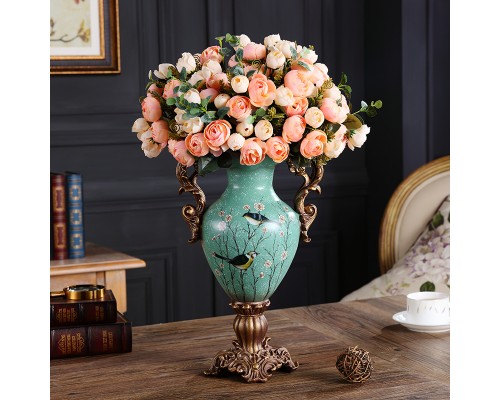 雙耳高花瓶配6束玫瑰花 (NT1,164)