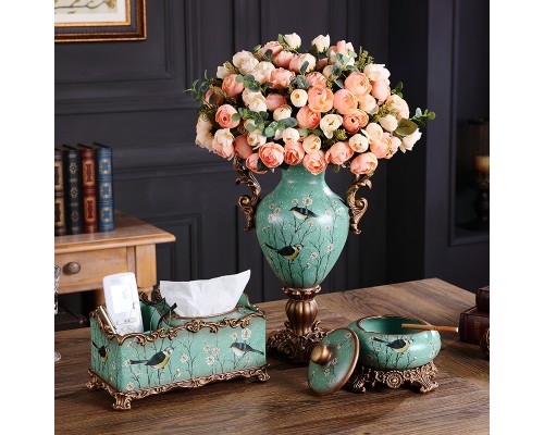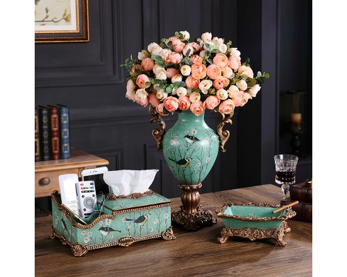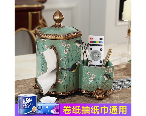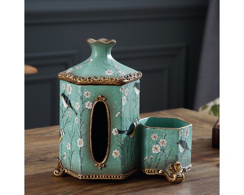 淺綠色 筆筒紙巾盒花插 (NT852)