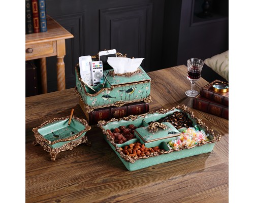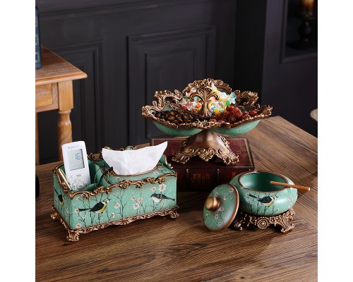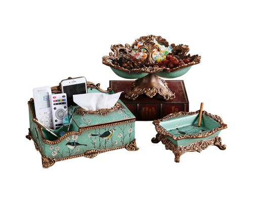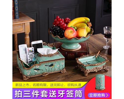 美式果盤套裝奢華家居客廳茶幾紙巾盒裝飾品家用歐式水果盤三件套